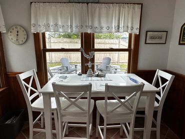 The Sandpiper Cottage's grassy backyard is completely fenced in, perfect for letting your children and pets play safely. Keep an eye on your children while relaxing on the extra large back deck. The deck comes complete with a dining table with a sun umbrella, a cushioned patio set, and a gas grill. Four adirondack chairs surround the newly installed wood firepit on the side yard patio and give additional seating and sunning options. The Wi-Fi covers the back deck so you can work and sun at the same time!
